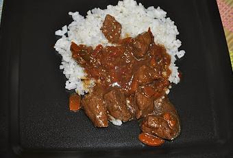 Servimos con la carne. Nota: No le he echado sal, porque la salsa de soja es salada y si no lo vais a encontrar un poco fuerte el plato.