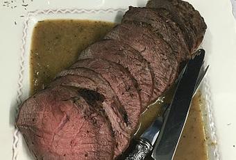 Se trincha la carne, se calienta la salsa y se sirve, acompañada de patatas o ensalada.