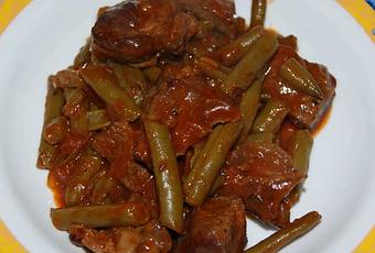 Pasados 15 minutos, retiramos la tapa para que el caldo se empiece a evaporar y se vaya haciendo una salsa. 5 minutos después incorporamos las judías verdes escurridas y cocidas al punto que más nos guste. Yo prefiero que estén un poco al dente. Mezclamos y dejamos otros 5 minutos a fuego suave para que los sabores se vayan mezclando.