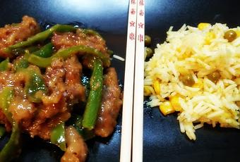 Consejo: Lo ideal es comer la ternera con pimientos mezclada con el arroz. Los chinos suelen colocar el arroz en un bol y encima la carne. Luego van pescando carne y arroz mezclados con los palillos.