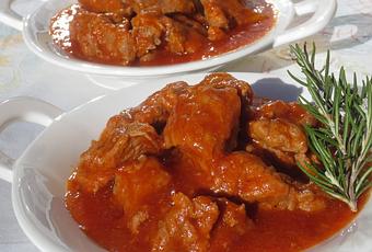 3- Añadir el laurel y la maizena disuelta en el vino de jerez , dar un hervor para favorecer la evaporación de alcohol, agregar el tomate, sal, pimienta y nuez moscada, válvula cerrada, menú turbo, 20 minutos, alta presión, 140º. Despresurizar, dejar reposar unos minutos.