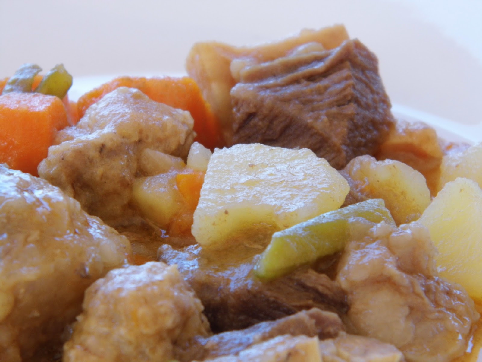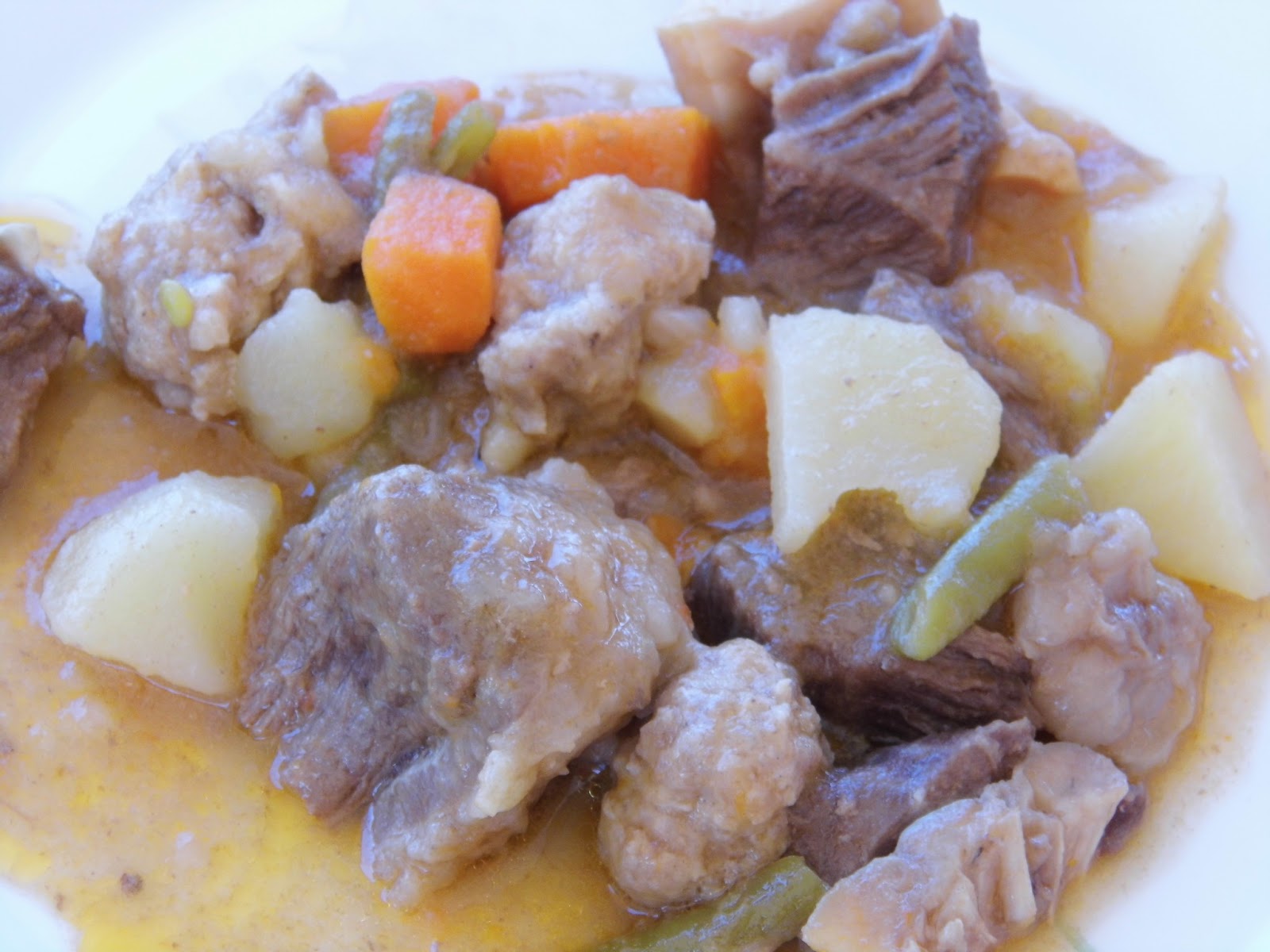 Como veis este plato no es mio, si no de la mejor profesora culinaria que se pueda tener "Mi madre" Aquí tenéis los ingredientes: 1 cebolla 2 o 3 zanahorias medianas 2 patatas grandes Un puñado grande de judías finas 1 tacita de vino blanco Unos 350gr 0 400gr de ternera para guisar tipo de Garreta o también puede ser con carrillada Albóndigas de carne Para las albóndigas de carne necesitamos: 4 longanizas un puñadito de piñones 1 huevo pan rallado perejil