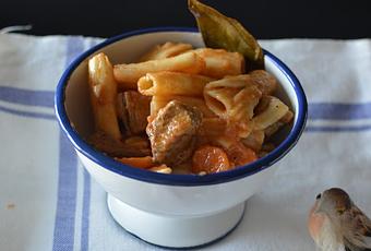 Este guisito con macarrones es ideal. Ella disfruta como todos los niños con la pasta y la zanahoria y la carne tiernita son también geniales para los niños.