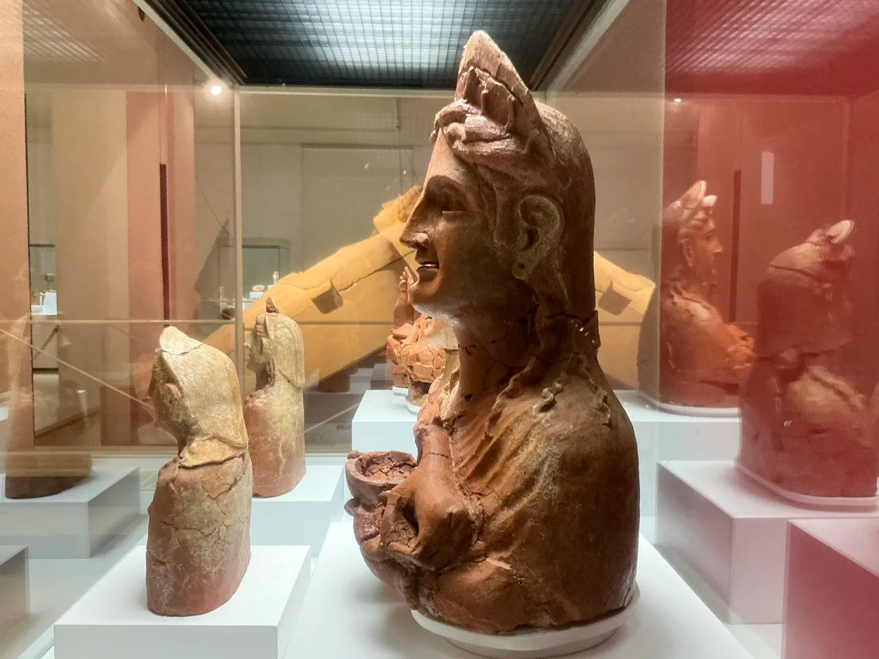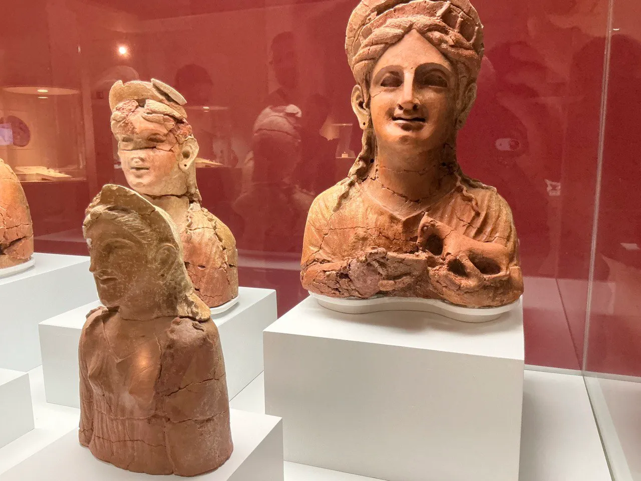 This type of terracotta is usually associated with Astarte, a highly venerated deity in Gadir. From the 5th century BC, the Phoenician goddess began to be represented in busts influenced by Greek art. This movement originated in Sicily, where it blended with the rites of Demeter, Persephone, and Kore (Greek agrarian deities linked to fertility) and with the Carthaginian cult of Tanit, soon spreading to the rest of the western Phoenician world. The Gadir pieces may depict the goddess herself as well as priestesses and devotees. Their chronology can be dated to the 5th century BC, given their archaic features.