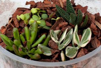- Cubran las piedras con un poco de tierra, pongan las plantitas elegidas y cubran bien todas las raíces. Esta capa será más o menos gruesa en función del recipiente que estén utilizando.