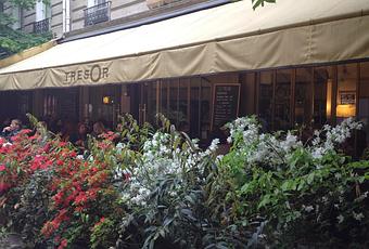 Buenos días!! ¡Qué éxito han tenido las fotos de la Torre Eiffel! Si es que... nunca me cansaré de verla y visitarla! De momento, sigo ensimismada con Le Marais, sus calles, sus tiendas, sus restaurantes... y más con este buen tiempo!! La gente se echa a las calles y... las terrazas están a rebosar, ¡qué ambientazo! Especialmente me gusta cómo está en esta temporada la Rue du Trésor, llena de flores, plantas, árboles... tiene tanto encanto! Por eso, un plan buenísimo puede ser, tras un paseo por Le Marais, sentarnos en la terraza de Le Trésor, en el número 5 la calle que lleva su nombre.