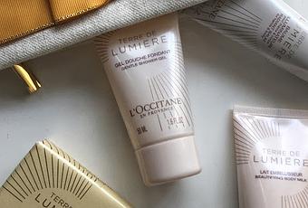 Con su textura sutilmente iridiscente, la loción corporal hidrata e ilumina la piel dejándola delicadamente perfumada con los aromas contrastantes de Terre de Lumiere. Enriquecida con miel de lavanda provenzal al igual que el gel de ducha. Su formula es ligera y sedosa, dejando la piel suave e hidratada
