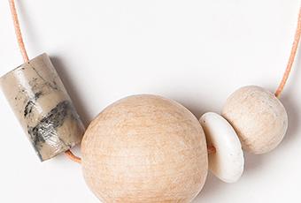Collares inspirados en los elementos naturales, las materias primas, la sencillez,... Combinaciones de piezas de madera natural, jaspe, coral,...