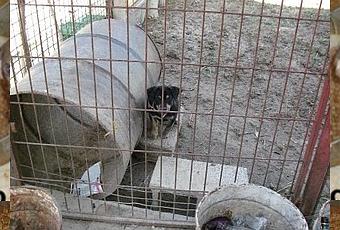 Aqui tenemos otro caso de brutalidad humana, a quien se le ocurre atar con una cadena a un cachorro de meses y darle carne cruda? pues solo a un hijo de su madre y no quiero decir mas por que ultimamente me estoy volviendo maleducada pero es que me pongo de los nervios de ver las barbaridades que hacen algunas personas...