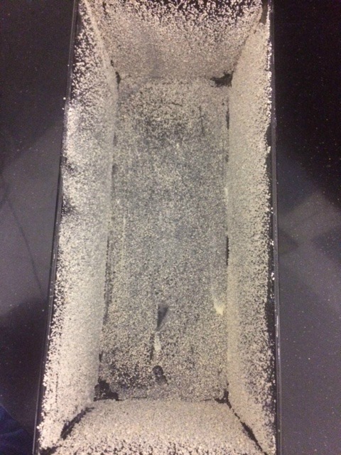 - El molde 25 x11 x7 cm lo unto de mantequilla y espolvoreo de pan rallado
