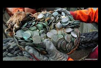 Se tratan de rupias de plata llevadas de la India a U.K para el esfuerzo bélico de la segunda guerra mundial,valoradas en unos 47 millones de euros las toneladas de plata en monedas,del barco de vapor "Bombay",torpedear por un submarino alemán hace 70 años en el océano Atlántico y recuperadas por los buzos de la empresa cazatesoros "savagers".Continuamos con otro barco hundido,este hace más de 500 años,uno de la flota del explorador portugués Vasco da Gama.