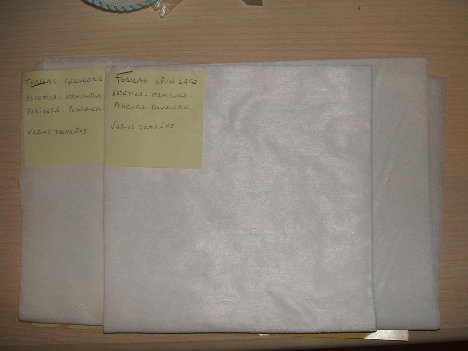 Aquí os muestro dos modelos de toallas de celulosa. Tienen un tacto muy agradable y suave. Son especiales para estética, manicura, pedicura o peluquería. Y están disponibles en varios tamaños.