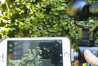El dispositivo cuenta con una cámara ubicada en el final del palo, y ofrece un soporte para el smartphone, que convierte al teléfono en monitor de la cámara DJI. Para ello, hay que sincronizar o emparejar ambos dispositivos, y configurar el teléfono de acuerdo con la app del gimbal. La función wi fi debe estar encendida.