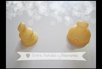 * Que hay dos tipos de tetinas, según la edad, unas hasta los seis meses y otras para después de los seis meses * Que hay tres tipos de tetinas según la apertura del orificio, y en consecuencia, lo que pueda pasar por ella para que vaya directo a la boca del bebé.. esto es, una para la leche materna y las infusiones (orificio pequeño), otra para la leche artificial o de bote (orificio medio) y otra más para alimentos más espesos, del tipo de leche con cereales (orificio grande). * Que hay dos materiales para las tetinas, latex o silicona