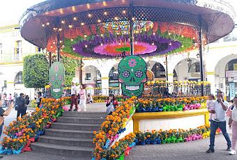 Texcoco se viste de fiesta y tradición en la temporada de día de muertos, engalanando espacios públicos, las instalaciones municipales y la invasión de catrinas en el palacio municipal.