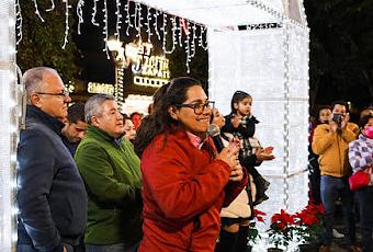 A la cuenta regresiva de 10, 9, 8, ….1, la presidenta municipal de Texcoco Sandra Luz Falcón Venegas, levantó el switch, que encendió miles de foquitos que iluminaron el arco navideño a la entrada del jardín municipal, las mamparas para fotografías y el monumental árbol navideño que indica el inicio de las celebración de pascua de fin de año en este municipio.