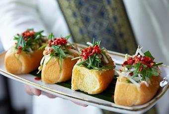 En Thai Arturo Soria elaboran los platos más característicos del recetario thai con las mejores materias primas. Exquisitos sabores que trasladan a lejanos destinos y conquistan el paladar desde el primer bocado. Entre su amplia variedad de entrantes destaca el sorprendente Brioche Satee. Un espectacular pan brioche con brotes de soja, menta albahaca, cebolleta, chile rojo y finas brochetas de pollo marinado en leche de coco, hierbas a la parrilla con salsa de cacahuetes que es verdaderamente adictivo. Otro de los entrantes más emblemáticos es el Karre Pab. Unas riquísimas empanadillas de pasta crujiente rellenas de verduras al curry amarillo y ternera que nunca pueden faltar, junto con el Kanom Gib Khung. Las fantásticas empanadillas de langostino acompañadas de salsa de pescado, ligeramente picante aromatizado con lima kafir.