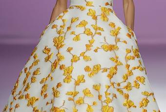 "For Valentina" así se llama la última colección primavera-verano de la firma The 2nd Skin Co. que hace referencia al nombre de la perrita de uno de los diseñadores. La pasarela se ha llenado de delicadeza y tranquilidad con vestidos despegados del cuerpo de la mujer, talles altos, abrigos rectos, largos midi y volúmenes muy años 50. Todo ello teniendo como referente los femeninos diseños de Christian Dior y Balenciaga. La firma española nos ofrece drapeados y bordados de flores para el día y grandes lazadas y brillos de la mano de Swarovski para la noche. Sobre la pasarela hemos visto un gran repertorio de materiales como el jacquard, la rafia dura, la tafeta, organza y encaje. Blancos, nudes, colores sorbete como el amarillo o el rosa y tonos metálicos y nacarados han desfilado por la pasarela. Las modelos han calzado sandalias en tono empolvado con el tacón decorado en pedrería.