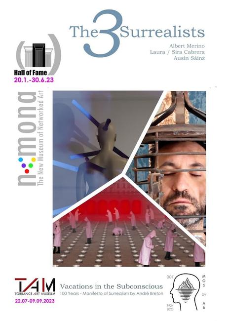 Hoy estoy muy feliz de anunciaros que "El Nuevo Museo de Arte en Red" presentará - "Los 3 Surrealistas" en el marco de Vacaciones en el subconsciente 1924-2023 – 100 años – Manifiesto del Surrealismo de André Breton.Será en el Torrance Art Museum Los Ángeles (EE.UU.) del 22 julio – 9 septiembre 2023