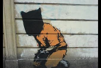 “Los mayores crímenes del mundo no son cometidos por las personas que violan la reglas, sino por las personas que las siguen. Son los individuos que siguen órdenes quienes sueltan las bombas y masacran aldeas”.No se conocen con certeza los detalles de la biografía del artista británico, lo que sí se sabe es que nació y creció en Bristol en el año 1973. Banksy siempre se ha preocupado por los conflictos internacionales y ha visitado países desestabilizados para dejar un mensaje de esperanza o de crítica social a través de sus creaciones influenciadas Blek le Rat en su utilización de plantillas, también conocidas como stencils.
