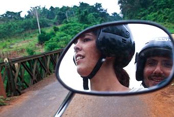 Alquilar la moto, genial, 5$/día, honda y se ven bastante cuidaditas. Ah, ¿pero no hay automáticas? ¿Todas son manuales? Aiiiix... Creo que toda añadir una habilidad nueva al repertorio... Las marchas aquí (¿¿cuatro marchas??), se frena con el pié (bufff...) Vuelta de rigor en solitario, vale, parece que ya le voy pillando el punto. ¡Sube Italo!