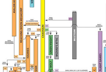 Es un cuadro que nos muestra la relación entre la editorial norteamericana Chaosium y las diferentes editoriales y empresas con las que ha trabajado a lo largo de los años, vía licencias de sus productos y creaciones, desde 1975 hasta 2020. Es obra de Shannon Appelcline (Designers & Dragons, entre otros trabajos), y la verdad es que da mucha información y muy buena. Este cuadro se complementa con los comentarios en esta entrada de RPG.net, que tiene algunos realmente divertidos al par que muy instructivos, como este que habla de Games Workshop: