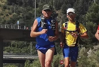 A partir de ese momento, empieza la segunda parte de mi entreno, ya en solitario, y teniendo por delante unos 19 km a pleno Sol y con un cansancio creciente... Y realmente he sufrido bastante, sobre todo en los últimos 8 km que se han convertido en un infierno debido no sólo al cansancio acumulado sino al implacable calor... En muchos momentos he creído estar en Los Monegros...!!! Reviviendo esa sofocante sensación del calor que va generando la tierra y que a cada zancada va subiendo por las piernas hacia arriba... Ha sido realmente duro... He dosificado el agua de los bidones lo mejor posible y con una gran dosis de fuerza de voluntad he superado un par de momentos críticos en los que deseaba que pasara algún coche para pararlo y subirme en él..!! (No ha pasado ninguno ya que esta zona está cerrada a la circulación...) Pero he resistido esos instantes catastróficos y he podido completar el entreno previsto... Han sido 44 km muy duros, sobre todo en la segunda mitad, y con el Sol castigando sin compasión... La lección de hoy es muy clara... Hay que contener el ritmo de carrera en distancias "Ultras" ya que cualquier exceso pasa factura sin ningún tipo de paliativo... Lo voy a tener en cuenta...!!