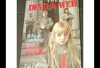 The Devil's Web: Who is stalking your children for Satan? de Patricia Pulling y Kathy Cawthon, es muy llamativo solo con ver las tapas. Ya desde la portada, el libro trata de mandar un mensaje contundente y directo al posible comprador/lector que lo tenga en las manos.
