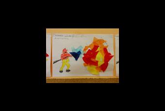 Esta semana hemos hecho una manualidad de un bombero muy valiente apagando un fuego enorme con una manguera.