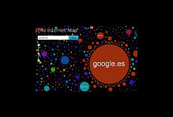 El mapa de internet es una presentación bidimensional de los vínculos entre los sitios web en internet. Cada sitio es un círculo en el mapa, y su tamaño está determinado por el tráfico del sitio web, a mayor cantidad de tráfico, mayor es el círculo.