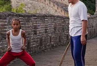 La verdad es que poco se debería de hablar sobre si el remake es fiel o no a la original. No es nada fiel, para empezar, el chaval de marras no aprende karate, sino como ya dije kung-fu. Tampoco se desarrolla en el instituto, sino en el colegio (o como se llama ahora, primaria). Yo no recuerdo mucho (decidme si me equivoco, que es lo más posible) que hubiese tanta moraleja junta en el film original, no sólo la diferencia de un chico que se muda a una nueva ciudad, sino que esa nueva ciudad es también un nuevo continente, donde no solo el idioma es diferente, sino que también lo es la cultura, handicaps añadidos a la situación en la que se encuentra el protagonista. Tampoco recuerdo que el Sr. Miyagi (Pat Morita) hiciese algo más de maestro en la preparación de Daniel (Robert Macchio) para el combate final….. No se, quizás mis recuerdos de dicha peli sean borrosos, pero yo en su momento, cuando la vi, no es que me llegara demasiado, y ésta sin embargo si que lo ha hecho.