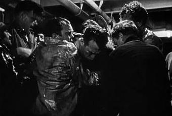 Tiene muchas cosas "The long voyage home", específicamente varios relatos que hallan en el barco un vínculo que va más allá de lo argumental, vínculo que no es otro más que el drama de los hombres que dedican su vida al mar. Pero antes de adelantarme, volvamos al punto inicial: los varios relatos. Con motivo del barco y su misión de transportar cargamento, veremos una especie de denuncia contra las malas condiciones de vida que ofrecen estos barcos, sobre cómo es que en la mayoría de los casos son verdaderas trampas mortales para hombres considerados prescindibles; un alegato antibélico que indica que las víctimas de la guerra se pueden encontrar mucho más lejos de los campos de batalla (a costa de los tripulantes, al capitán se le encarga transportar peligrosos explosivos para el ejército inglés), víctimas que por lo demás no tienen por qué ser soldados y cuyas muertes se dejarán al olvido mientras se hunden en el mar; una pequeña trama sobre la desconfianza que entre sí pueden despertar los hombres, y un recordatorio sobre lo despreciables que pueden ser algunos especímenes terrestres. No obstante, sin importar la trama de turno, lo que siempre subyace a todas las anteriores es el grupo de hombres y el fuerte vínculo que los une, esa camaradería que resiste viento y marea. Desde luego, con dicha pulsión subyacente surge otro relato más, más humano y trágico, ése sobre el hombre que huye de la vida en tierra, el hombre que no tiene nada por delante, el hombre que no tiene dónde regresar, el hombre cuya vida es un viaje que lo llevará por lugares oscuros y sucios así como otros brillantes y paradisíacos... Al principio puede haber una sensación de idealización del mar, pero a medida que avanza el metraje se hace claro que Ford nos muestra la trágica naturaleza del mar, su calidad de cuchillo de doble filo: el mar es olvido y es libertad: te aleja de tus dramas en tierra, te da una nueva oportunidad de redimirte; de todas formas, el mar es condena: es olvido, te sumerge en los abismos de la soledad y el abandono. Así, con la tierra empujándote al inclemente mar, ¿qué es lo que queda? La tripulación, hombres que caen poco a poco, hombres que esperan su turno para irse de este mundo. No señor, Ford no nos muestra las bondades de la vida en altamar; nos deja caer sin contemplaciones en la más absoluta desesperación disfrazada de esperanza y oportunidad. Un viaje melancólico, doloroso, indefenso, con más simbolismos de los que uno podría imaginarse (sabemos que Ford no se dedica sólo a poner la cámara, sino que de verdad utiliza las facultades expresivas de la imagen)... Un viaje que nunca termina, pues de algunas cosas simplemente no se puede huir.