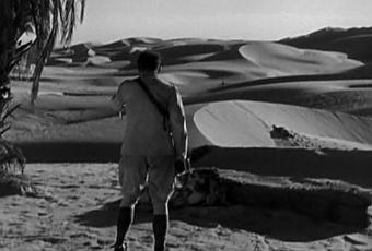 Pues sí: Ford construye su película desde la nada, entendiendo ésta como (1) el espacio en el que transcurre la acción, un desierto infinito que sólo ofrece dunas y más dunas, y como (2) el punto de partida en el que se encuentran el sargento y sus hombres, premisa argumental llena de incógnitas y posibilidades. Y peor: con un enemigo invisible, que bien podrían ser los árabes que asesinaron al teniente en la primera imagen, o bien podría ser el miedo, la locura y quién sabe qué otro mal capaz de consumir al hombre, los cuales se pueden encontrar incluso dentro de la misma patrulla... En base a esa nada, Ford comienza una auténtica clase de narración, haciendo gala de un minimalismo realmente magnífico capaz de poner en imágenes lo perturbador y desolador no sólo de la guerra, sino del abandono y la desesperanza, con escenas que logran inquietarte y removerte ya sean aquellas más gráficas en su violencia o esas otras más sutiles en su desesperación. Pero digo clase de narración porque con un argumento reducido a su mínima expresión, sólo con lo esencial del relato a la vista, Ford nos cuenta una guerra mucho más oculta y dañina que aquella en la que luchan los soldados protagonistas; nos muestra con lujo de detalles las miserias del ser humano así como -probablemente- sus mejores elementos, como si éste fuera un conflicto eminentemente existencialista, pero (contundentemente) expresado a través de la materialidad de las cosas. ¿Estaré exagerando? No me importa: me encantan las películas que echan a volar la imaginación y la reflexión -cinematográfica, de la vida...