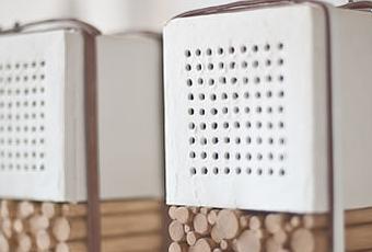 La particularidad de estos altavoces es la conjugación de dos materiales, la porcelana y la madera. El concepto es generar con estos materiales un “sonido natural”, logrando reproducir unos bajos gordos y unos altos fuertes. Por otro lado la estética es impecable.