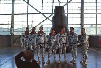 La segunda lectura proviene, creo yo, del libro de Wolfe -y digo "creo" porque no lo he leído-. Y puede sonar a contradicción considerando que Kaufman debió haber captado el mensaje e incluirlo dentro de su película, pero el mensaje en sí no tiene un tratamiento serio ni concienzudo. Antes de continuar con esto, vayamos al mensaje: el proyecto Mercury fue un vil circo mediático cuyo fin era más propagandístico que científico, incluso cuando es un hecho que lo segundo trajo importantes datos y resultados -a los estadounidenses-. El gobierno utilizó el ruido mediático para acrecentar su popularidad y la imagen país, el heroísmo estadounidense y todo ese discurso, obviamente debido a la humillación sufrida ante los triunfos rusos. La situación es casi como reacción de niño envidioso: el vecino tiene un juguete que es más lindo y funciona mejor, y de inmediato corres para tener algo que lo supere. Capricho puro que con el tiempo va adquiriendo "motivos".