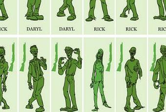 La ilustración muestra una lista cronológica de los zombies aniquilados, que personaje los mató y el arma que usó para hacerlo, todo clasificado por temporada.