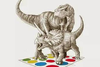 Al ilustrador inglés Michael Buxton le gusta que le llamen dinomike en su carrera como artista fuera de la industria de tarjetas de felicitación, quizá porque tiene especial debilidad por los lagartos terribles del pasado. Una muestra es este diseño de camiseta para Threadless, en la que dos dinosaurios pelean sobre un tablero de Twister en la "batalla final". Puedes conseguir la camiseta por 25 dólares aquí.