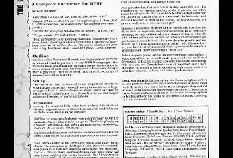 Esto que os traigo, que se titula The Vermilion Pawn, esta sacado de la WD 103 UK (Julio de 1988) y que mas tarde fue incluida en el suplemento Apocrypha 2 de Hogshead Publishing (Mas concretamente, en el sección 3 pagina 44), publicado en agosto del 2000. Creo que ese suplemento salio publicado es españa de manos de La Factoría. Fue escrito por Ken Rolston.