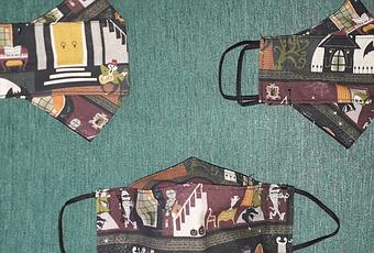 Tenía una tela muy fantasmagórica, con momias, gatos negros, casas encantadas... y decidí hacerles a mis peques una mascarilla para ese día.