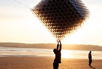 Three Cubes Colliding es una cometa o barrilete experimental, creado por Sash Reading y Heather & Ivan Morison. La cometa en forma de cubo cuenta con 1700 conectores creados en una impresora 3D, varillas de fibra de carbono y tejido aeroespacial.