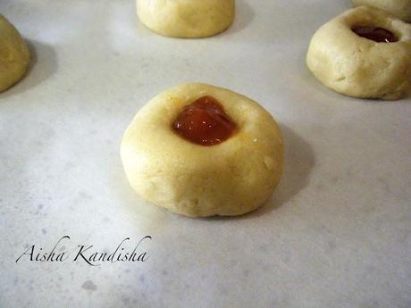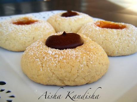O lo que es lo mismo, GALLETAS CON HUELLA. La verdad es que ninguno de los nombres me gusta, pero por alguno tenía que decantarme, opté por el término inglés que me sonaba más glamuroso, más chic, es decir, más como yo...;) Son unas galletas sencillísimas de hacer, riquísimas, con una textura arenosa, como de pastas de té. El nombre le viene dado por la manera en que se le da forma, y es formando un hueco con el dedo, que después se rellena de mermelada o chocolate.INGREDIENTES: