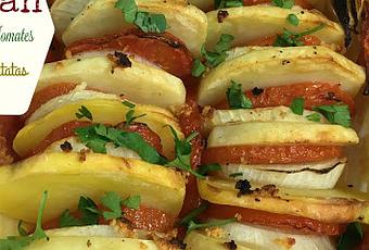 Se puede hacer un tian de cualquier verdura mediterránea: calabacín, berenjenas, nabo... con o sin queso e incluso se puede hacer con frutas. Lo que no debe faltar es el gratinado en el horno. Yo elegí las patatas pues trajo la tía Paula, de Fariza de Sayago, en Zamora unas patatas de su huerta maravillosas.