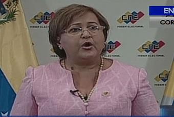 La presidenta del Consejo Nacional Electoral (CNE), Tibisay Lucena