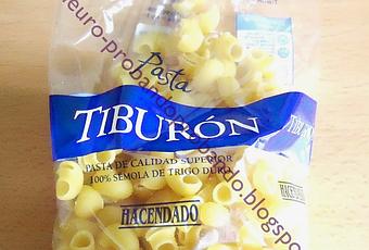 La verdad, no sé por qué esta pasta recibe este nombre, porque no relaciono su forma con la forma de un tiburón, pero lo cierto es que se ha quedado con ese nombre característico y ahora la gran mayoría de gente sabe de lo que hablamos cuando hablamos de los tiburones de pasta.Se trata de una pasta que, aunque está comercializada por la marca HACENDADO, ha sido fabricada por LA FAMILIA, empresa que comercializa toda la pasta que vende esta cadena de supermercados y que pertenece a GRUPO SIRO, que también podemos ver en los envases de infinidad de productos de alimentación Hacendado. La fábrica central se encuentra en Palencia y de ellos depende la producción de pan, bollería, pastas, galletas, bollería y cereales que encontramos en Mercadona.