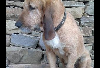 ESTE ES MI PERRO. SE LLAMA TICO. ES UN CRUCE DE SABUESO DE PELO DURO COLOR CANELA Y EL PECHO BLANCO. TIENE ALREDEDOR DE TRES AÑOS. HA DESAPARECIDO A 10 KM DE CERVERA DE PISUERGA, EN EL NORTE DE LA PROVINCIA DE PALENCIA.
