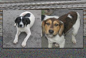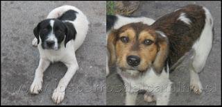 Con el tiempo se han ido entregando, de los cuatro, quedan estos dos perros que son machos, mestizos entre pointer y foxterrier, de tamaño mediano.