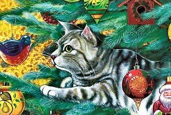 Ilustración autor desconocido.Escondido en una caja esperando sumomento, el árbol de Navidad estabasupercontento.¡Ya es ocho de diciembre! repetíailusionado.Muy pronto vendrán los niños alegres yalborotados.Montarán todas mis piezas, me llavarán alsalón, con adornos, luces, bolas, estrella y espumillón.Tumbado en el sofá esperando sumomento, el gato de la familia descansatan contento.¿Qué ven mis ojos gatunos? pensabailusionado. ¿Qué hacen los niños alegres yalborotados?¡Están montando un árbol, aquí es plenosalón, lleno de bolas, adornos, luces yespumillón!El árbol lucia hermoso y se sentía feliz.El gato miraba atento y movía su narizDe un salto subio a las ramas y aporreó susadornos, que salieron despedidos y alguno llegó hasta el horno.El árbol se quedó atonito, no se lo podíacreer. ¡Tu, bola peluda! ¿Qué es lo queacabas de hacer?El gato muy satisfecho trepó ágil a laestrella, enseño su uña afilada y se puso al lado de ella.¡Ni se te ocurra minino! -dijo el árbolenfandado- como te muevas un pelo me pongo de medio lado.El gato acercó su uña y sonrió,el árbol hacia un lado se inlinó.Al gato de un plamazo de le borró lasonrisa y del árbol, de un gran salto,aterrizó a toda prisa.Es tiempo de Navidad; dijo el gato en sonde paz- ¿Qué te parece, arbolito, sillegamos a un acuerdo?Es tiempo de Navidad, dijo el árbol en sonde paz. De lo que ha pasado hoy, la verdad,ya ni me acuerdo.Sin tocar ni un solo adorno, el gatitodelicado se echó en las ramas del árbol conmuchisimo ciudado.Es tiempo de Navidad, tiempo de amor yde paz.