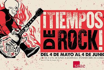 La Sociedad General de Autores y Editores (SGAE) organiza la exposición '¡Tiempos de rock!, una muestra intergeneracional que rinde tributo al rock español de las últimas cinco décadas. La muestra dibuja un heterogéneo y emocional retrato de un movimiento cultural que durante los últimos cincuenta años ha dado voz a la juventud y, a la vez, se ha erigido como banda sonora de varias generaciones de españoles.