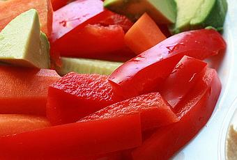 - 1 taza de verduras crudas como zanahorias y pimientos con 1/3 de taza de hummus