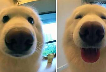 Revisa a continuación estas divertidas fotos que muestran cómo cambia la mirada de algunas mascotas al escuchar que son un “buen chico”: